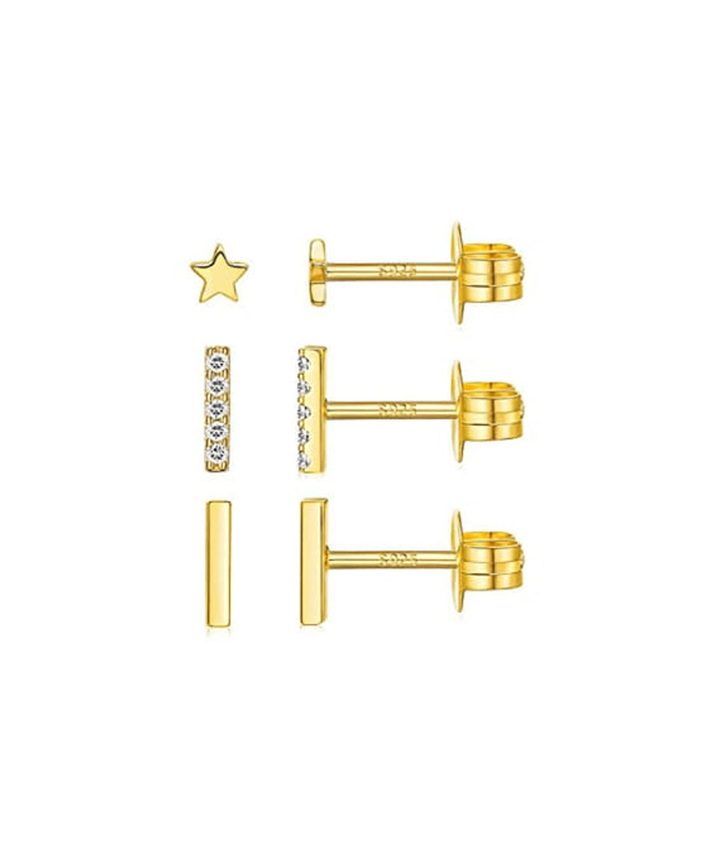Ασημένια καρφωτά σκουλαρίκια σετ με γεωμετρικά σχέδια και αστέρι επιχρυσωμένα
