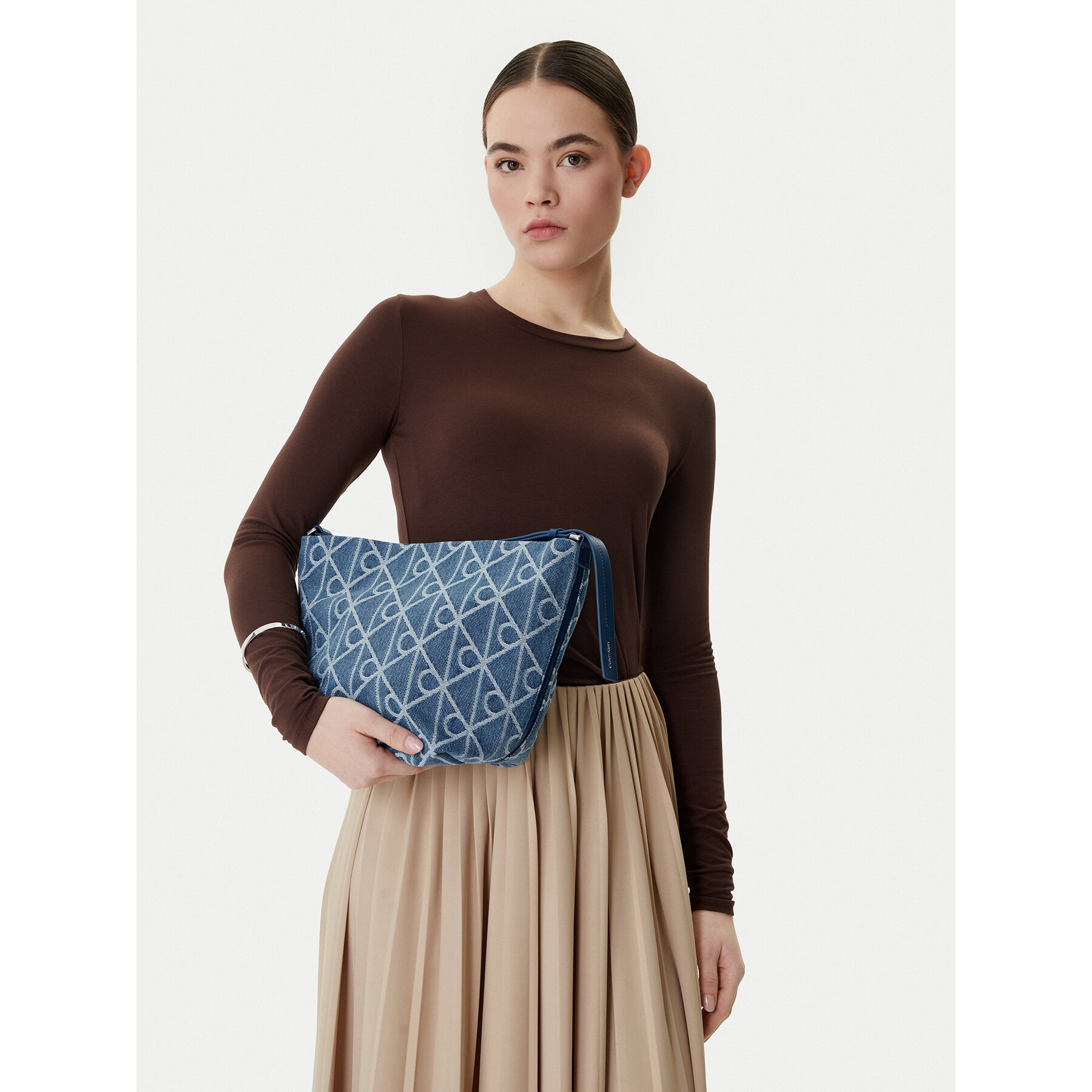 Τσάντα Calvin Klein Emblem Aop Denim Shoulder Bag LV04F3431G Μπλε
