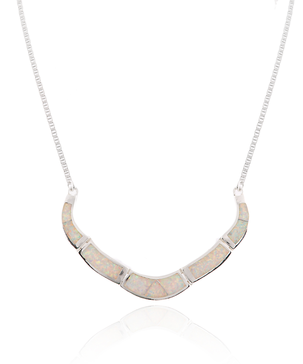 Ασημένιο Κολιέ με Λευκό Οπάλ Πέτρα σε κομψό λεπτεπίλεπτο σχέδιο