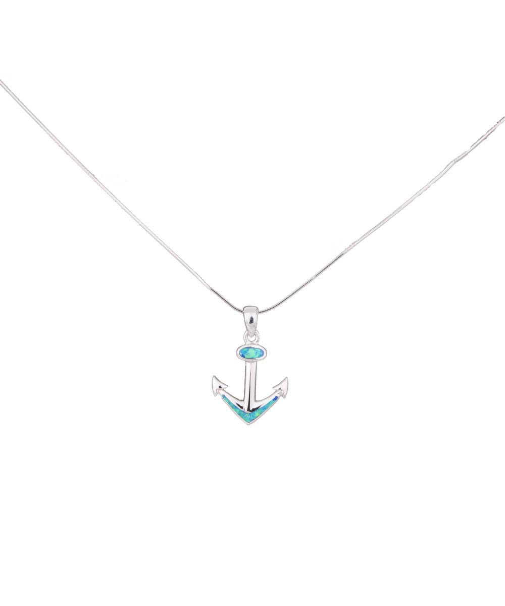 Ασημένιο Κρεμαστό σε σχήμα Άγκυρα με Μπλε Οπάλ