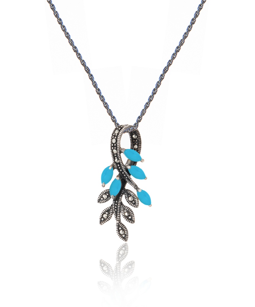 Ασημένιο μενταγιόν με σχέδια σε Κλαδιά Ελιάς στολισμένα από Τυρκουάζ και Μαρκασίτη