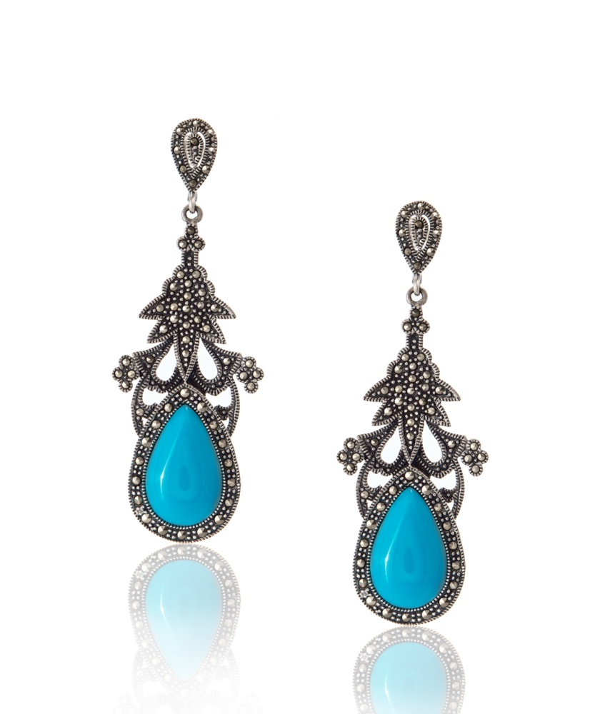 Ασημένια Σκουλαρίκια Μαρκασίτη με Τυρκουάζ Πέτρα