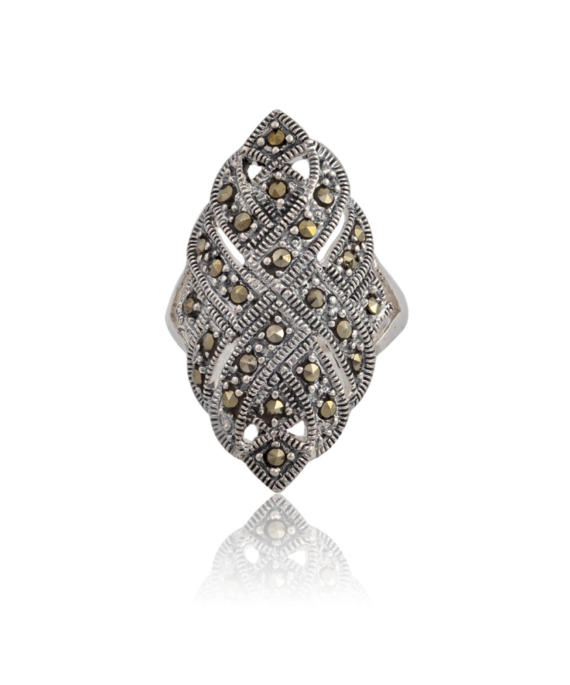 Ασημένιο δαχτυλίδι μαρκασίτης σε σχέδιο μαίανδρος