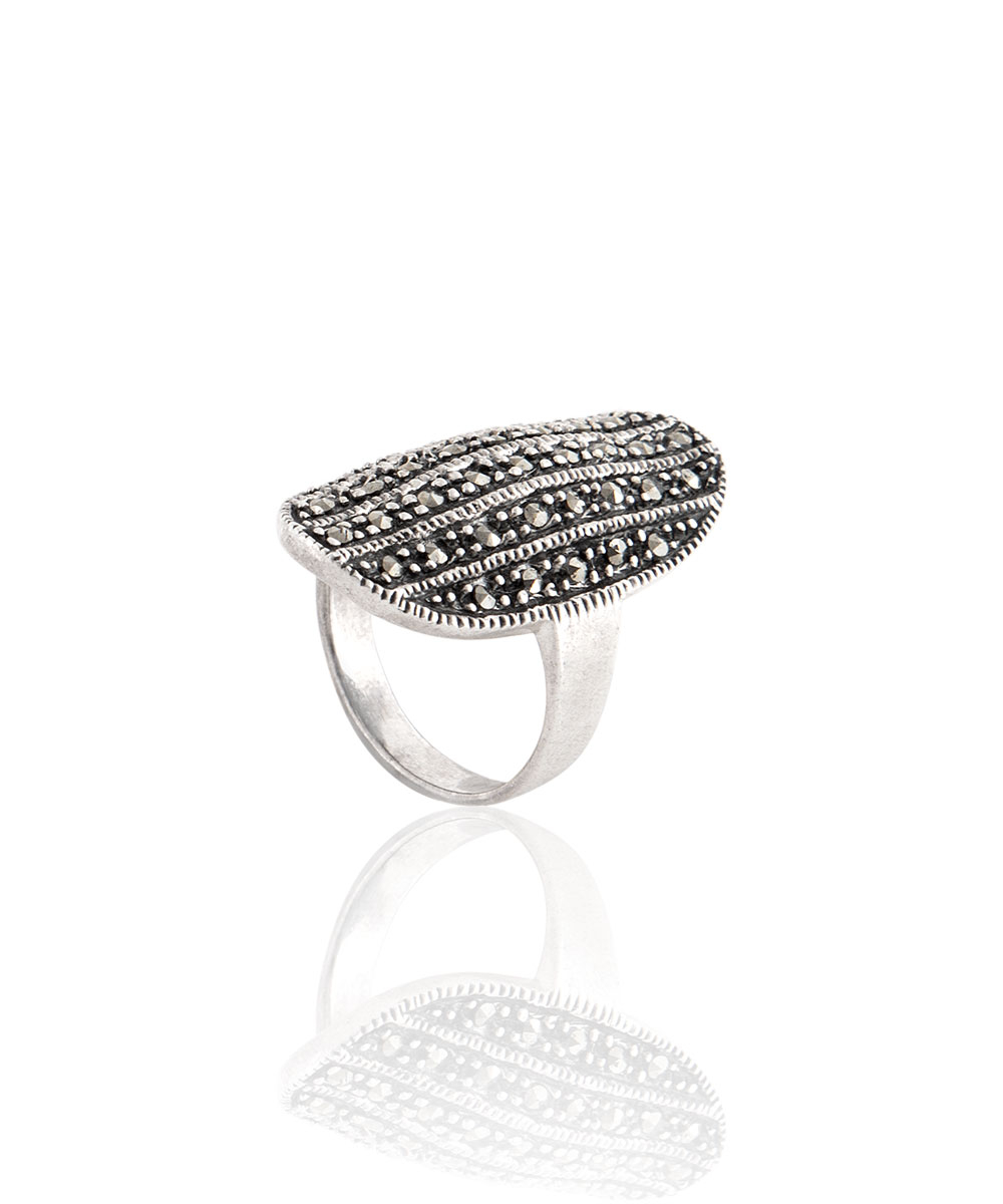 Ασημένιο δαχτυλίδι σε σχήμα οβάλ με μαρκασίτη και ασημένιες λεπτομέρειες