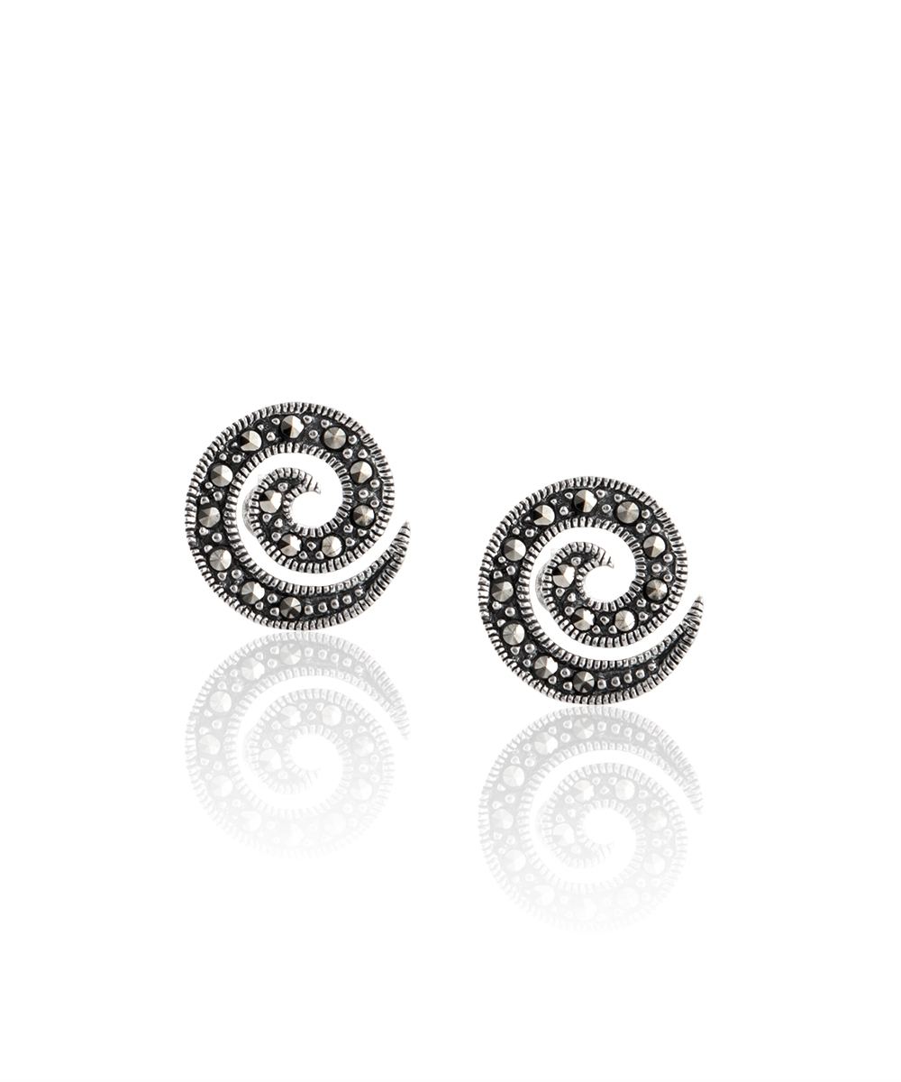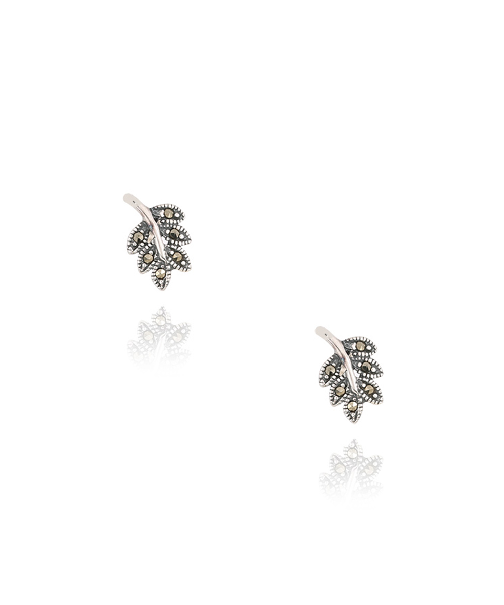 Ασημένια καρφωτά σκουλαρίκια μαρκασίτη σε μοτίφ ελιάς