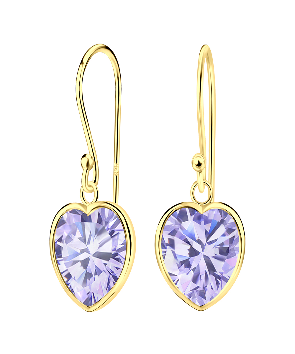 Ασημένια κρεμαστά σκουλαρίκια με Καρδιά από λιλά Ζιργκόν επίχρυσα