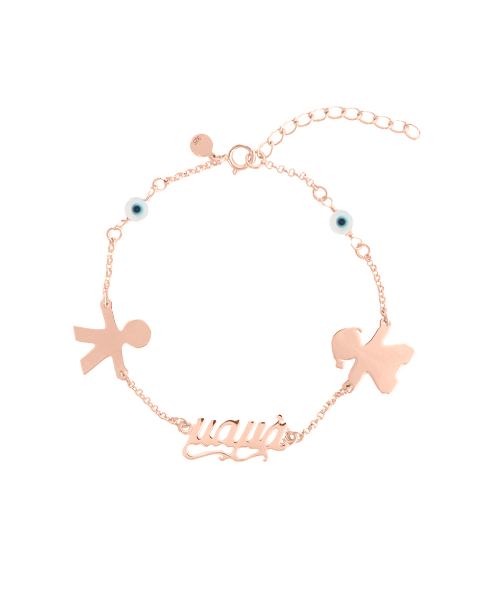 Ασημένιο βραχιόλι μαμά με ματάκι και αγοράκι ή κοριτσάκι επιχρυσωμένο με ροζ χρυσό