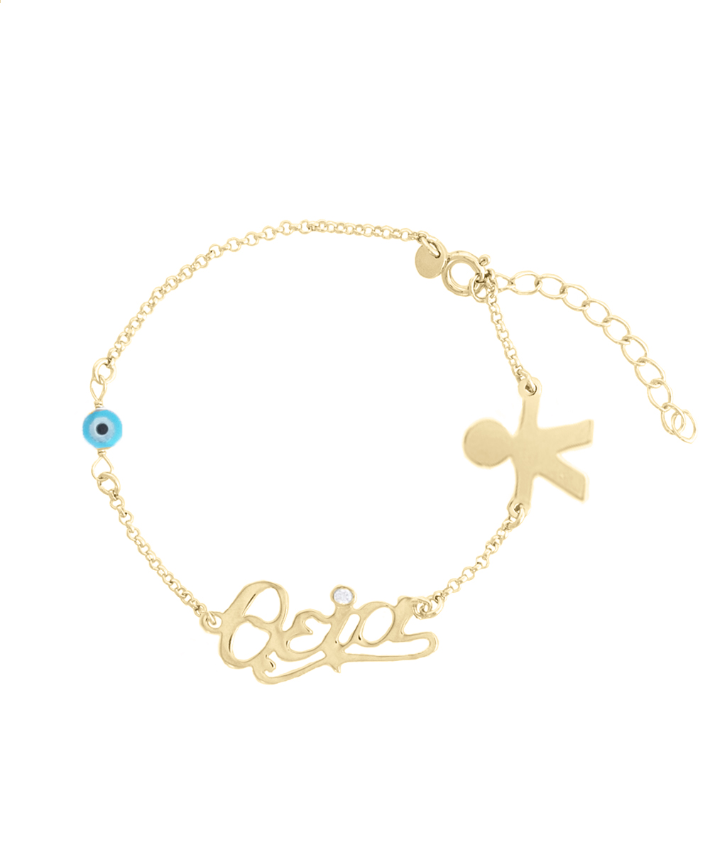 Ασημένιο βραχιόλι θεία με ματάκι και ένα αγοράκι ή κοριτσάκι επιχρυσωμένο