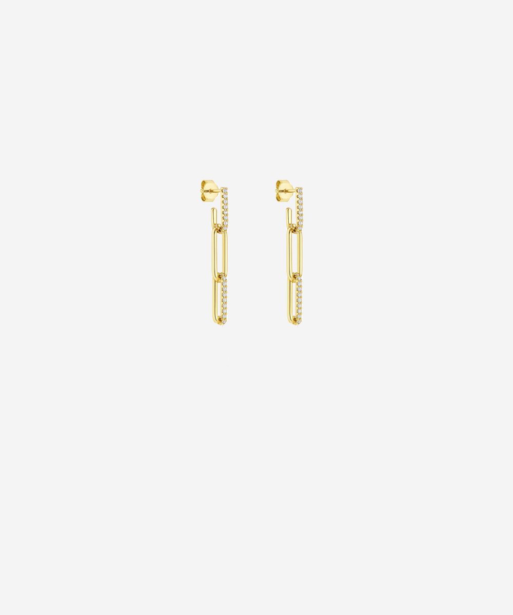 Κρεμαστά σκουλαρίκια από ασήμι 925 με σχέδιο αλυσίδας διακοσμημένη με λευκά ζιργκόν, επιχρυσωμένα
