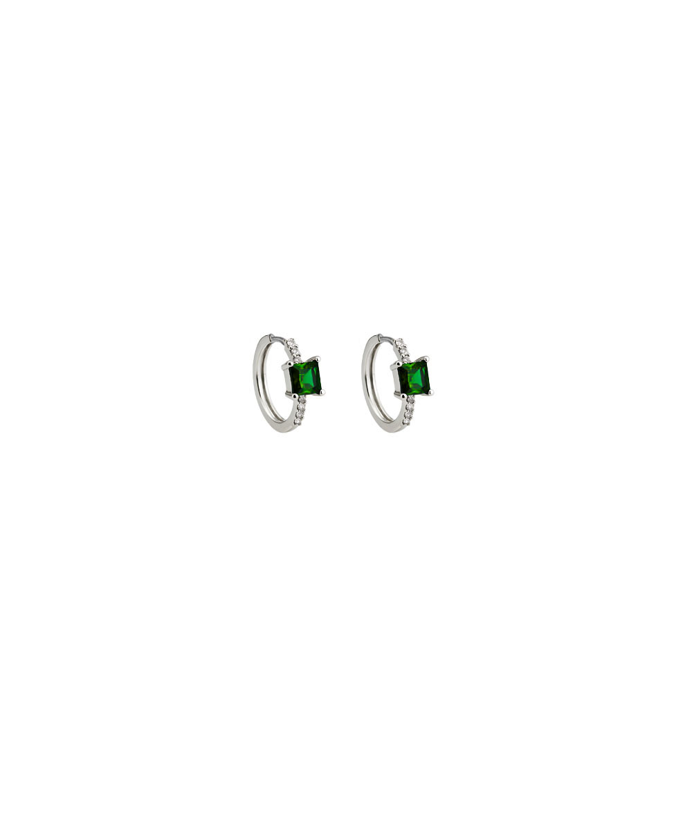 Κρίκοι σκουλαρίκια από ασήμι 925 με πράσινα και λευκά ζιργκόν
