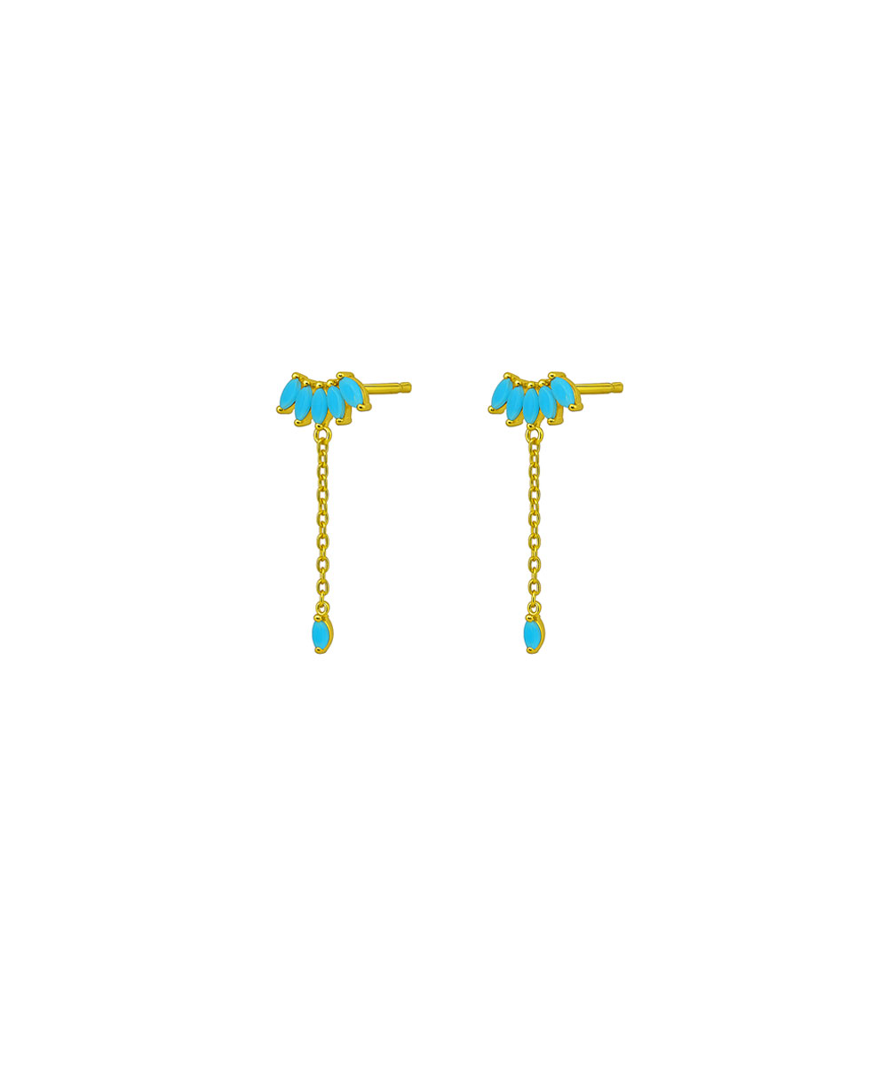 Κρεμαστά σκουλαρίκια από ασήμι 925 με τυρκουάζ πέτρες, λευκά ζιργκόν και αλυσίδα, επιχρυσωμένα