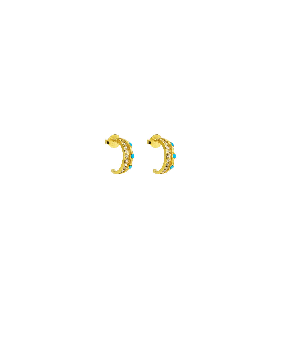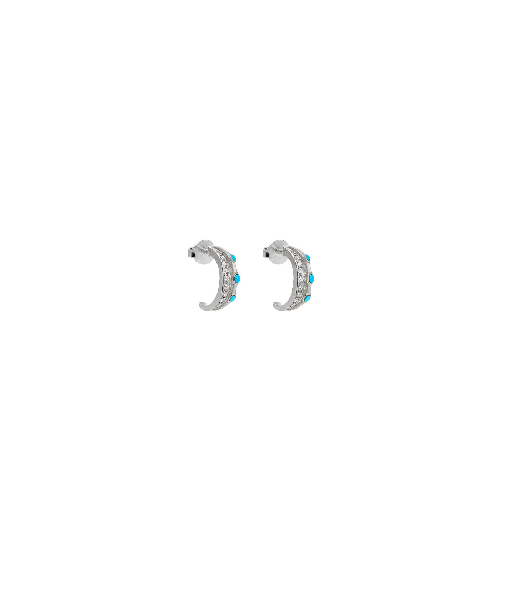 Κρίκοι σκουλαρίκια από ασήμι 925 με λευκά ζιργκόν και τυρκουάζ πέτρες