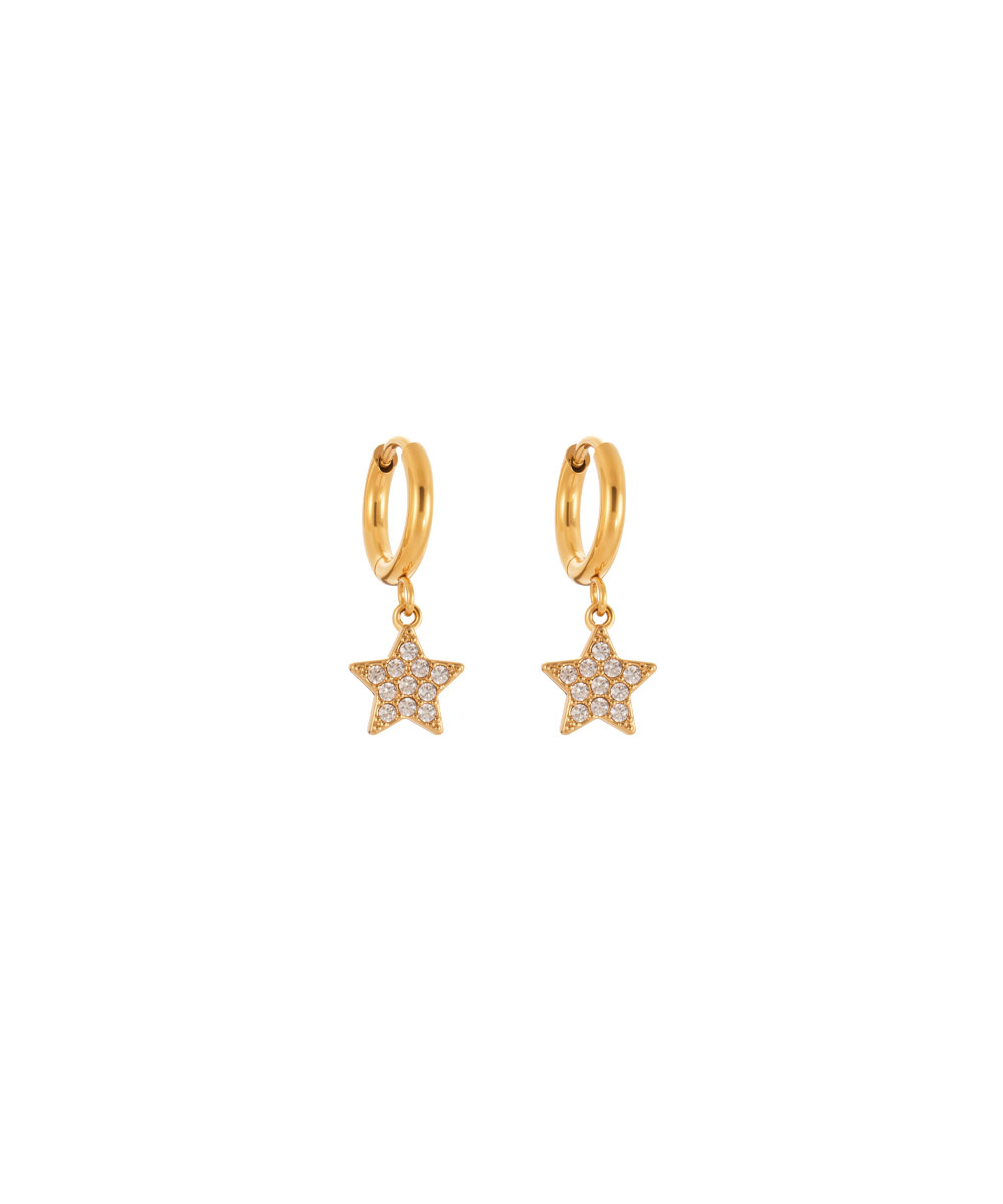 Κρίκοι σκουλαρίκια με αστέρι και λευκά ζιργκόν από ανοξείδωτο ατσάλι σε χρυσή απόχρωση
