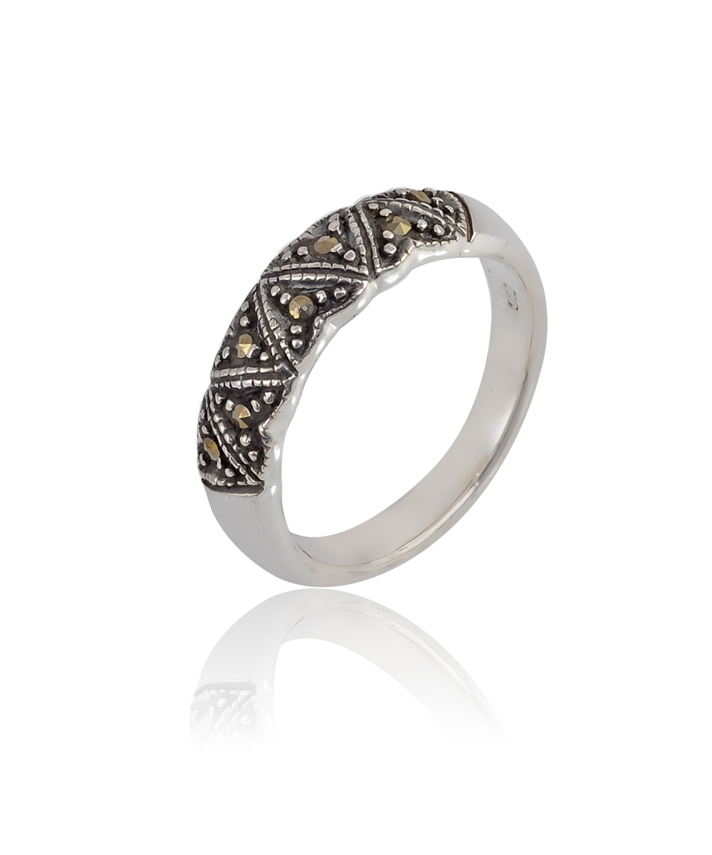 Ασημένιο δαχτυλίδι μαρκασίτης σε σχέδιο 2 ασύμμετρων γραμμών