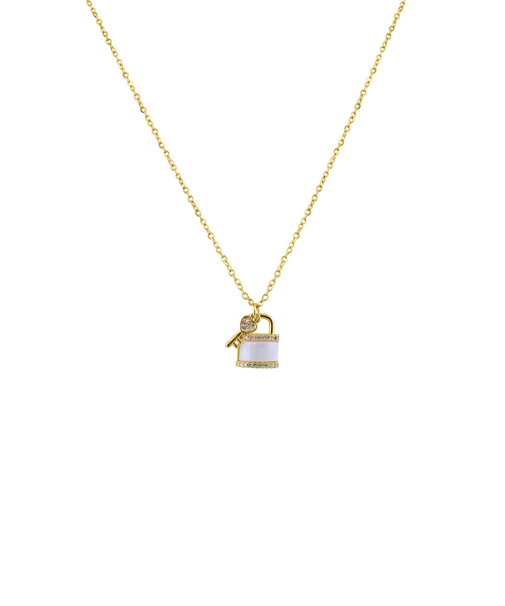 Κολιέ με λουκέτο και κλειδί από μέταλλο σε χρυσή απόχρωση
