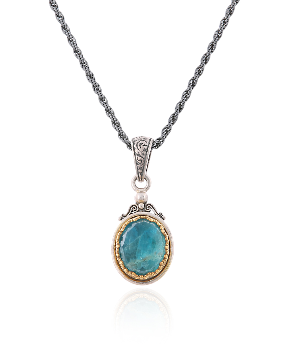 Ασημένιο βυζαντινό χειροποίητο μενταγιόν GEROCHRISTO με απατίτη και επιχρυσωμένο οβάλ δέσιμο