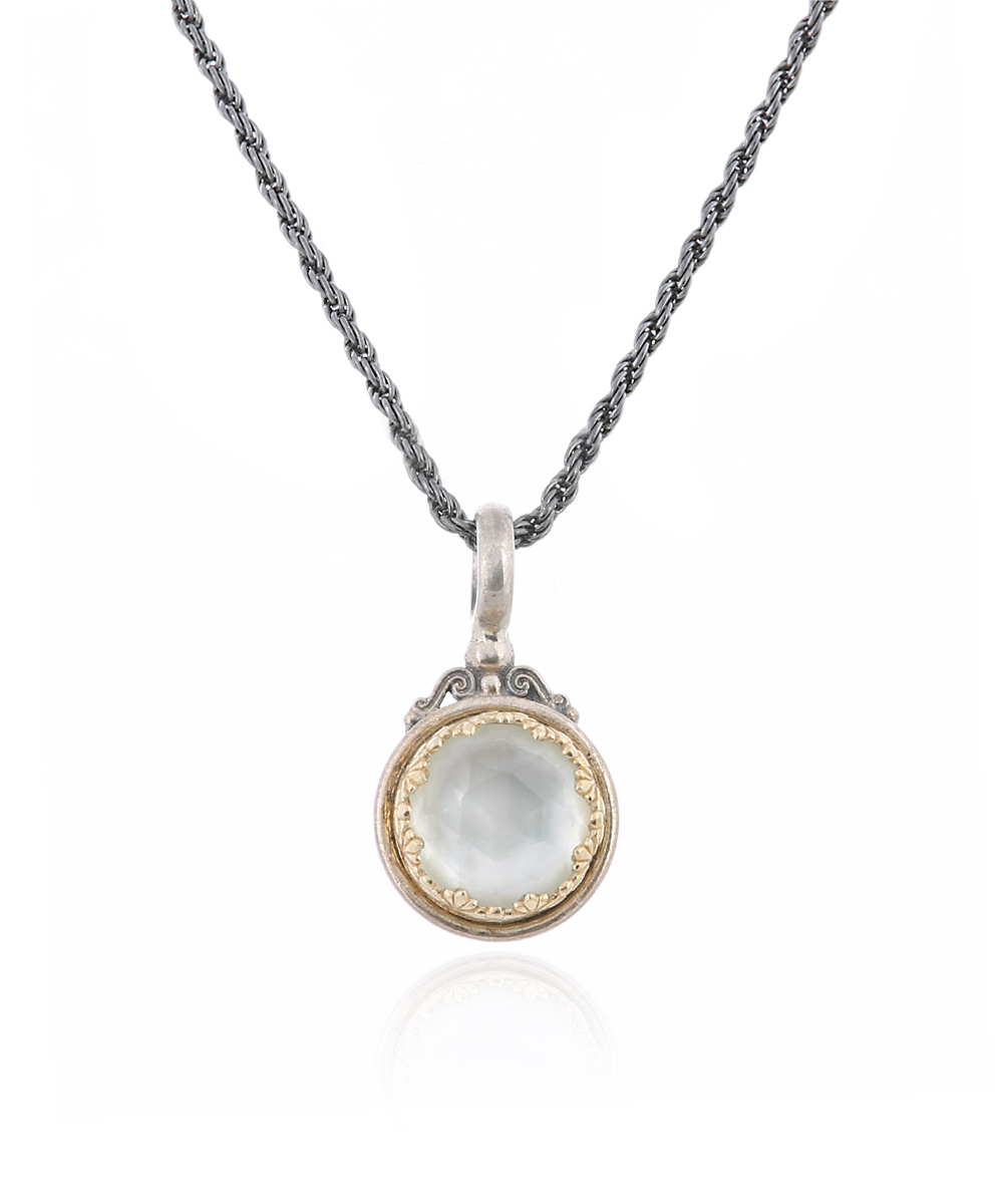 Ασημένιο βυζαντινό χειροποίητο μενταγιόν GEROCHRISTO με απατίτη και επιχρυσωμένο στρογγυλό δέσιμο