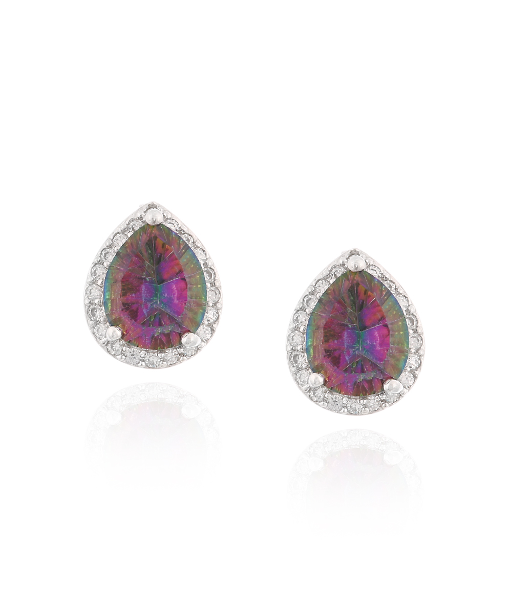 Ασημένια Καρφωτά Σκουλαρίκια με mystic topaz σχήμα δάκρυ