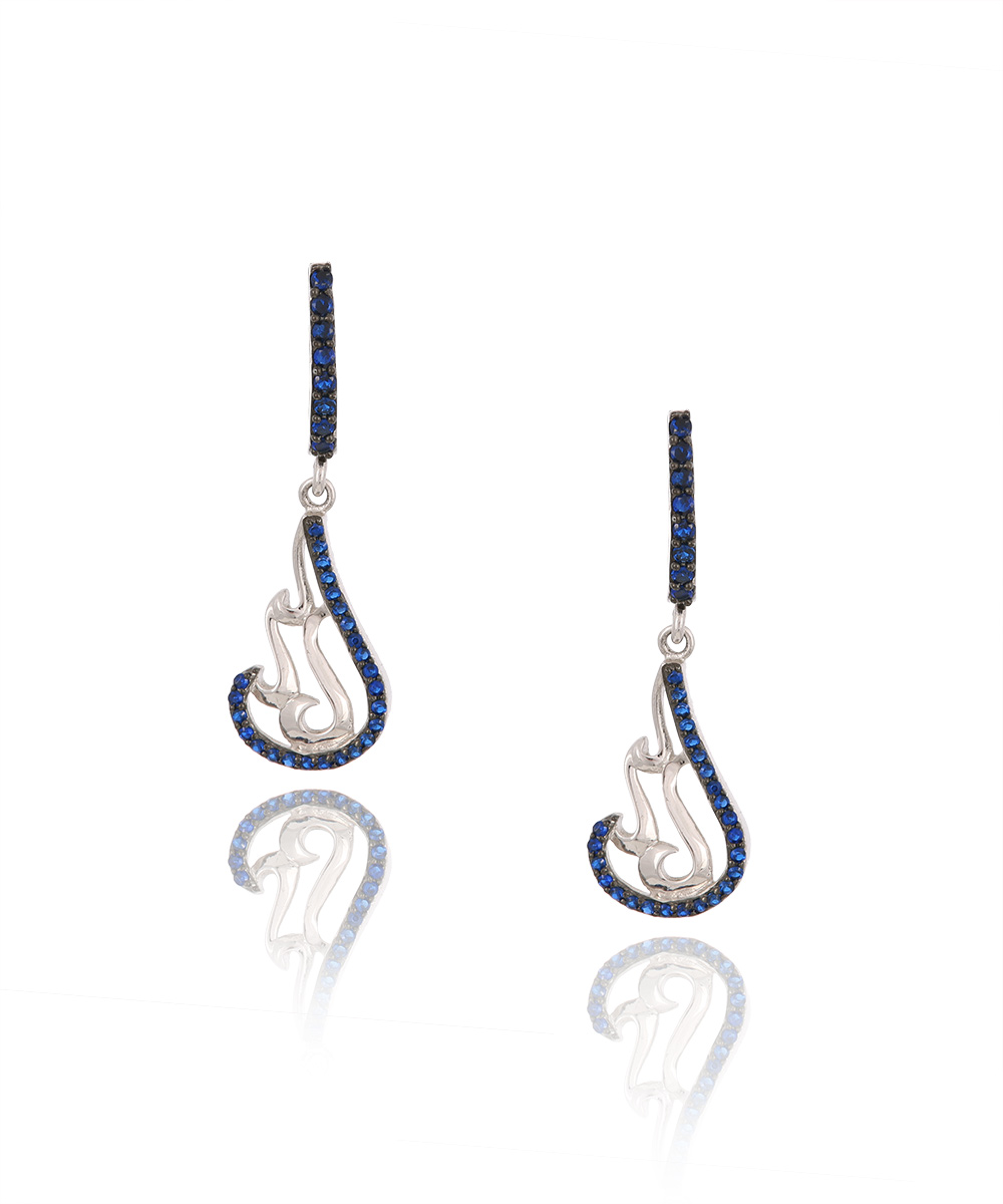 Ασημένια Σκουλαρίκια με French Clip σε ιδιαίτερο σχέδιο διακοσμημένο με μπλε Ζιργκόν