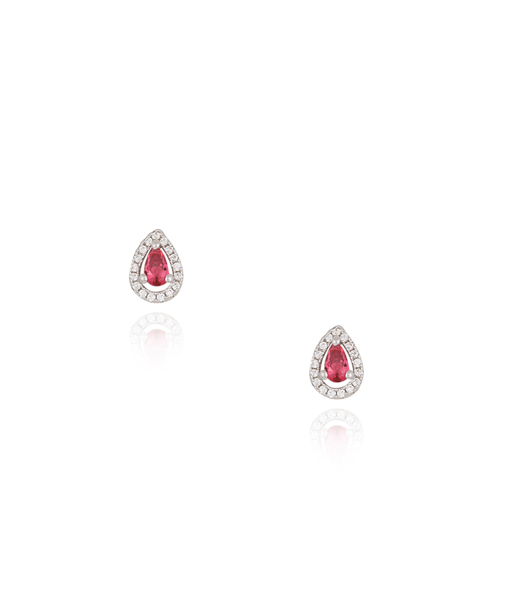 Ασημένια Μονόπετρα Καρφωτά Σκουλαρίκια σε σχήμα δάκρυ με λευκά Ζιργκόν και ροζ πέτρα.