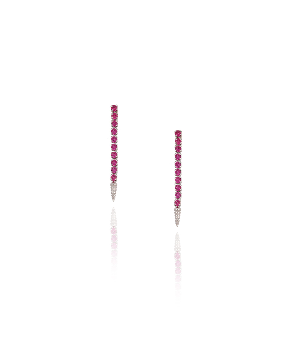 Ασημένια μακριά Καρφωτά Σκουλαρίκια με ροζ Ζιργκόν