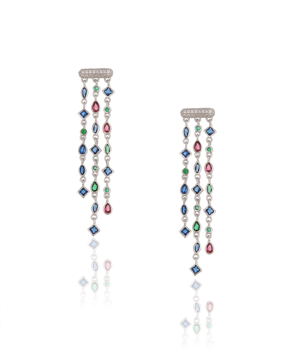 Ασημένια Καρφωτά Σκουλαρίκια με λευκά Ζιργκόν, μπλε, ροζ και πράσινες πέτρες