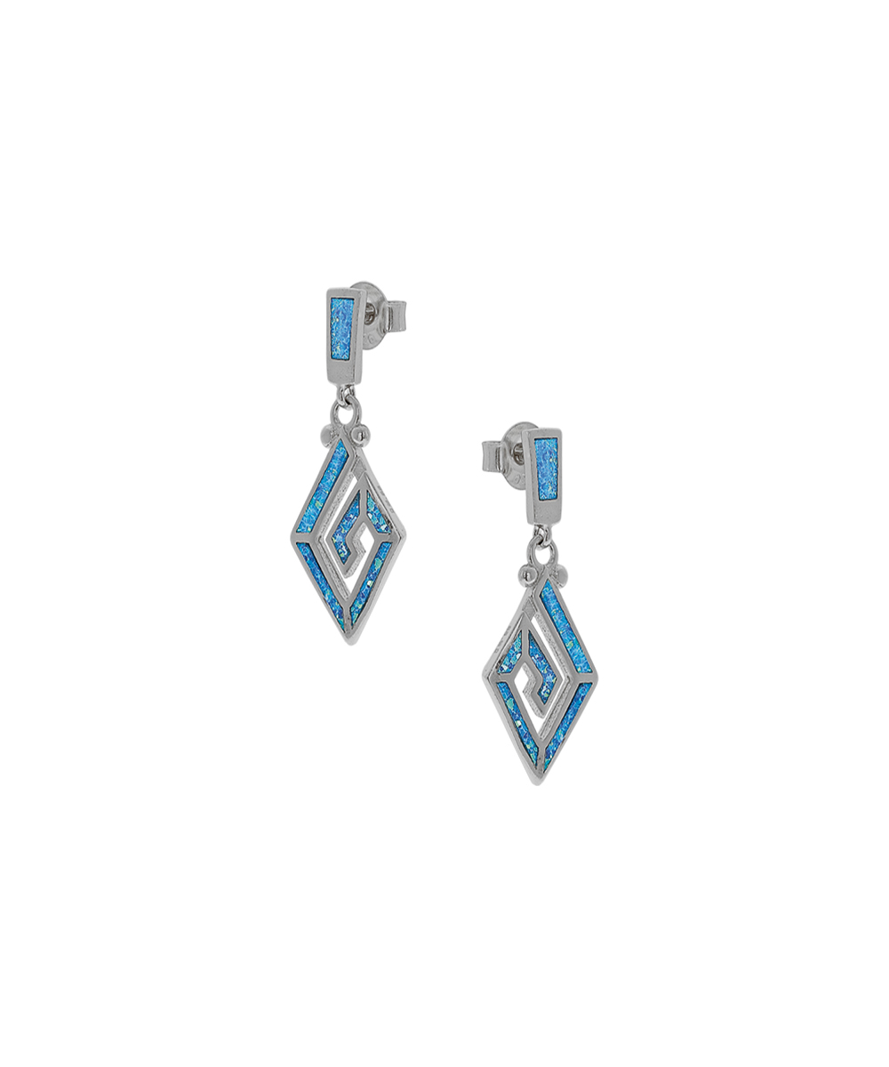 Ασημένια καρφωτά σκουλαρίκια με Μαίανδρο και μπλε οπάλ πέτρα