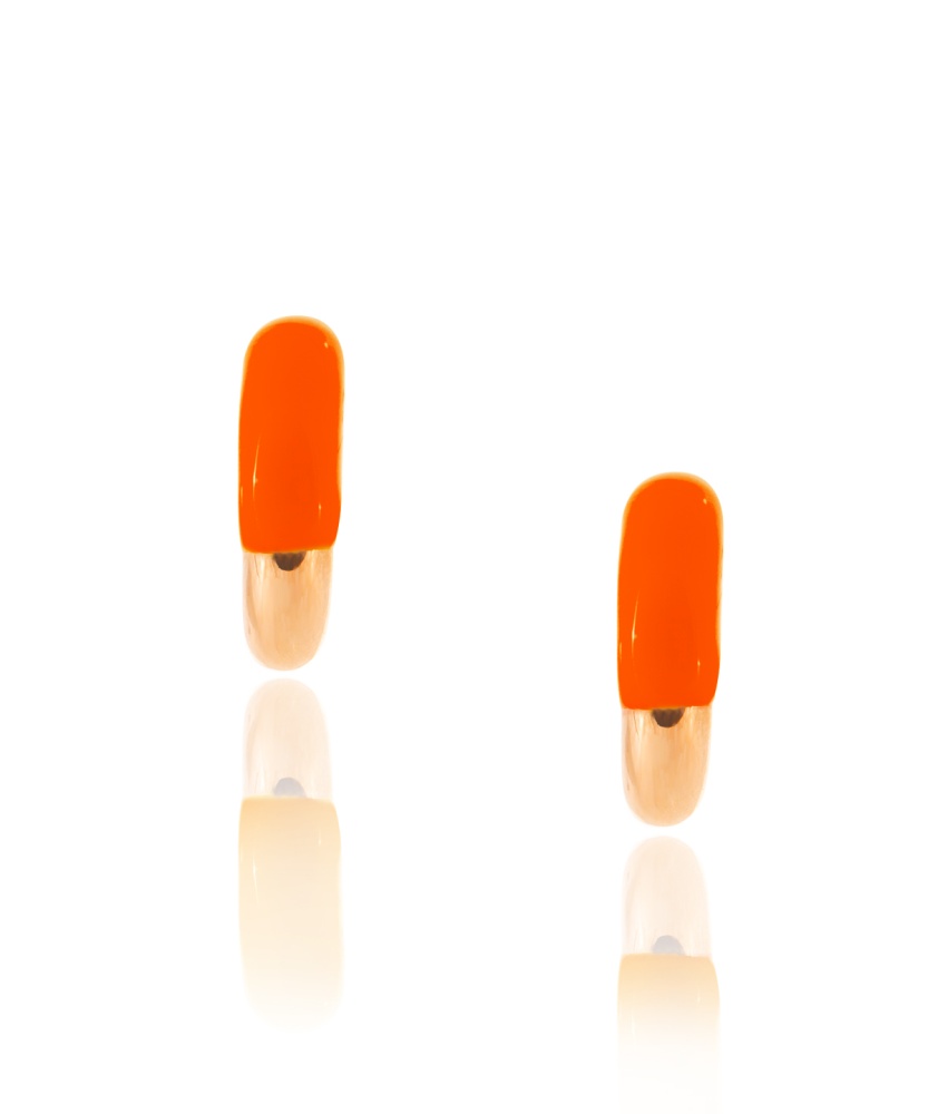 Ασημένια Καρφωτά Σκουλαρίκια Κρίκοι Επιχρυσωμένα με Ροζ Χρυσό σε πορτοκαλί Νέον απόχρωση