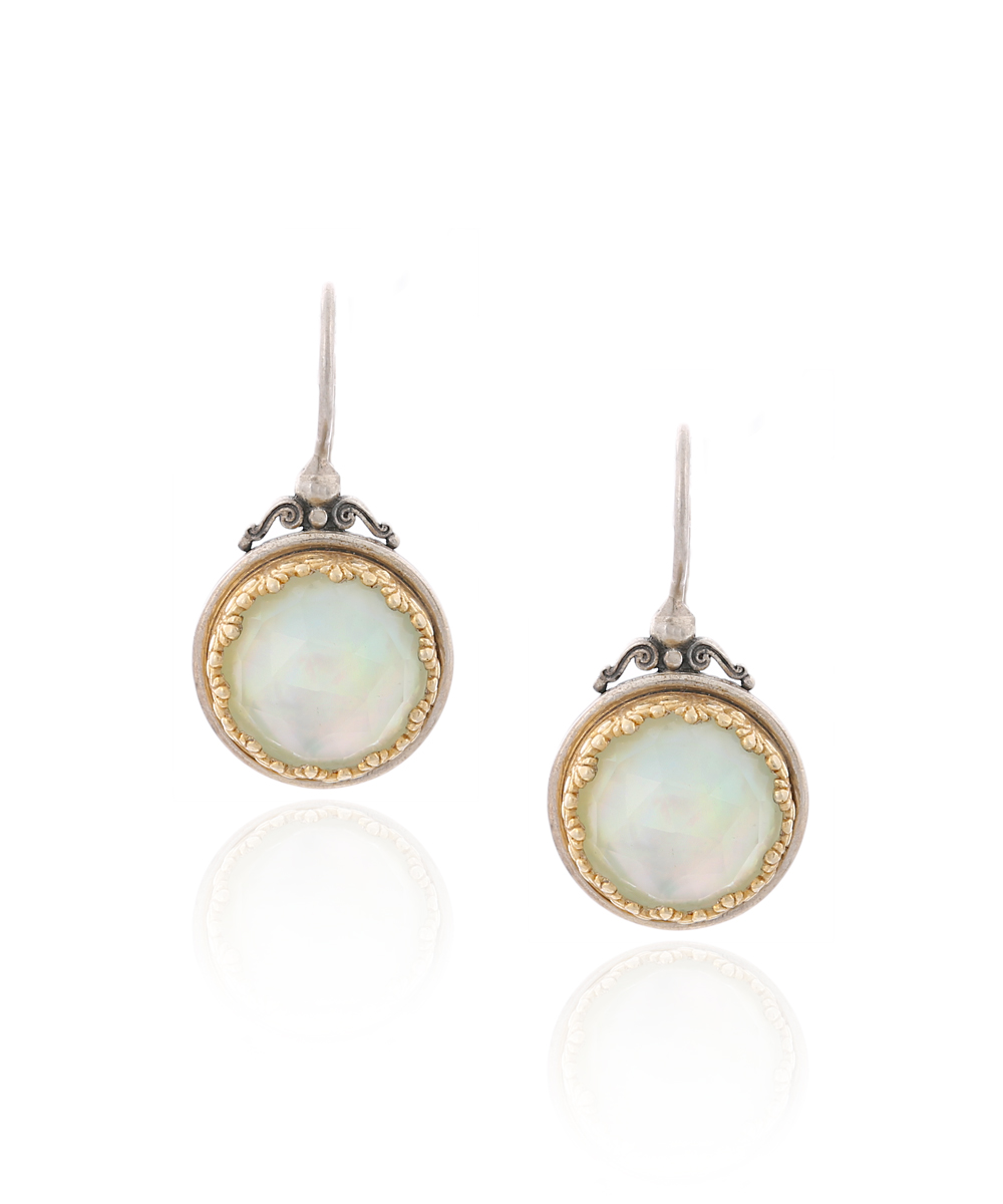 Ασημένια κρεμαστά χειροποίητα βυζαντινά σκουλαρίκια GEROCHRISTO με φίλντισι σε στρογγυλό σχήμα και επιχρυσωμένο δέσιμο