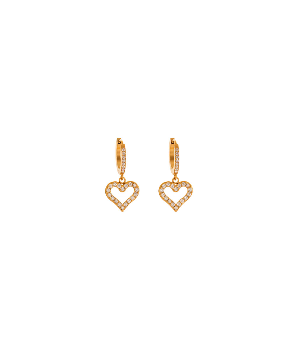 Κρίκοι σκουλαρίκια με καρδιά και λευκά ζιργκόν από ανοξείδωτο ατσάλι σε χρυσή απόχρωση
