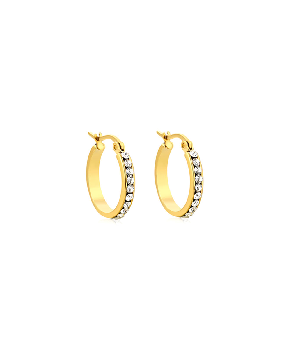 Κρίκοι σκουλαρίκια με ζιργκόν μεσαίου μεγέθους από ανοξείδωτο ατσάλι σε χρυσή απόχρωση