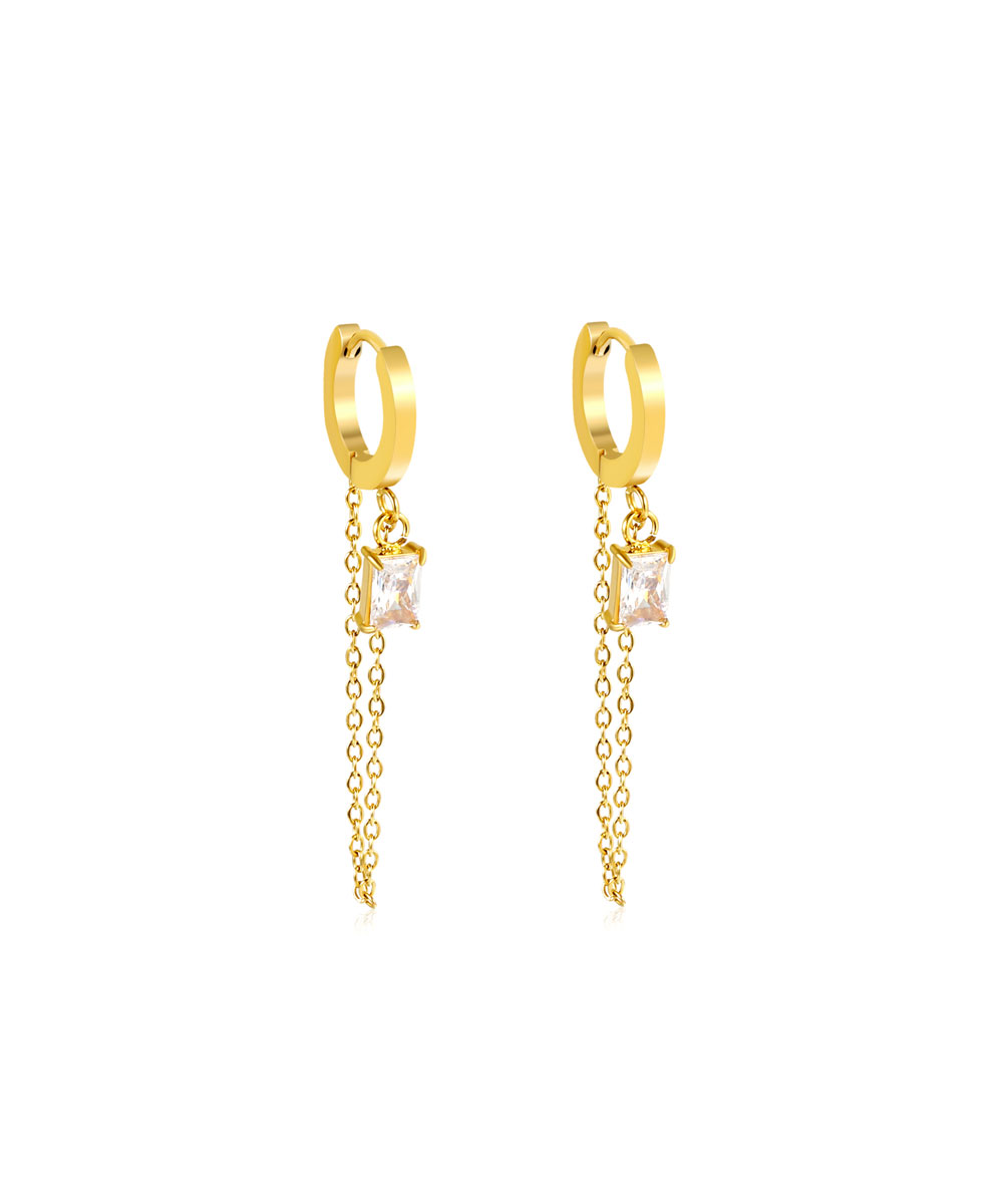 Κρίκοι σκουλαρίκια με λευκό ζιργκόν και αλυσίδα από ανοξείδωτο ατσάλι σε χρυσή απόχρωση